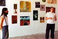 aufkratzt. Er malt auf Holzplatten, die er übermalt und aus der er die Farbe wieder